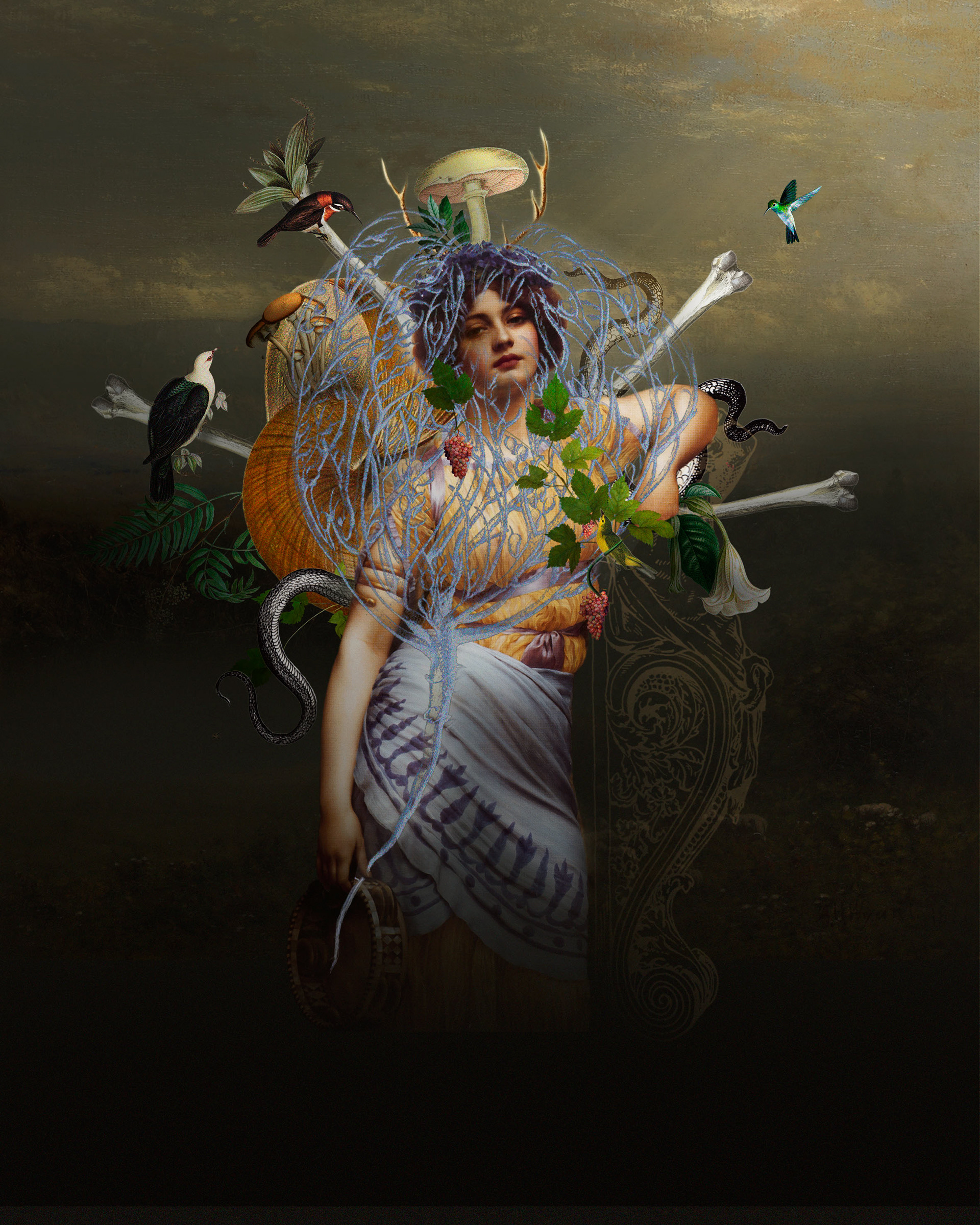 Mujer serpiente collage digital.